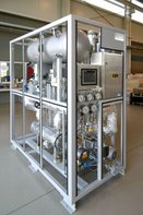 To maintain a constant pressure inside the storage tanks and to reduce losses over the ammonia supply chain the ammonia gas is continuously sucked off by a customized screw compressor skid made by Polar, where BOG is re-liquefied and sent back to the tanks. The screw compressor skid has been designed for operation in a hazardous zone.Principle