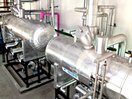 The ammonia gas is sucked off by a screw compressor through installed on skid liquid separator vessel to protect compressor from droplets of liquid. Than gas is compressed and transferred to condenser. Gaseous ammonia is liquefied by cooling water. The liquid ammonia is collected into a receiver vessel. From the receiver liquid ammonia is directed back towards the storage tank.